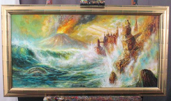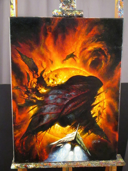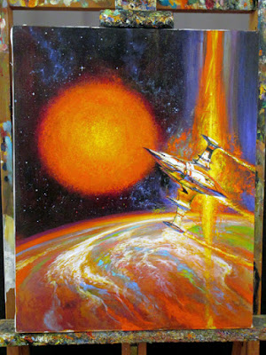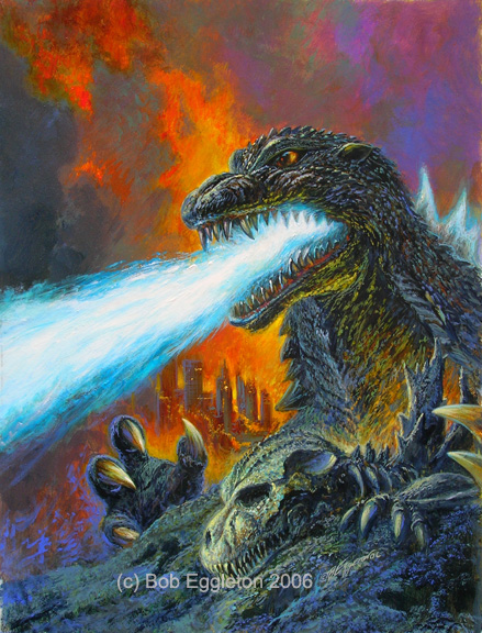 Here is an oldie. Done in 1991 for an ad agency. "Storming' Norman" for an early computer game based on the Gulf War. 20 x 30 acrylics on board. $500.Hi, I'm Bob Eggleton and this is my painting and "life in general blog" but mostly paintings. Usually they're for sale. Anyway, if you like something contact me at zillabob@cox.net and ENJOY!!