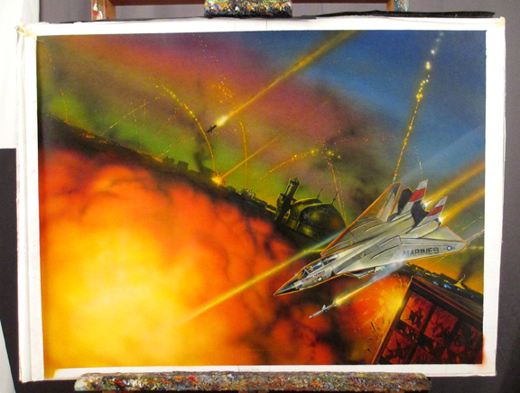 Here is an oldie. Done in 1991 for an ad agency. "Storming' Norman" for an early computer game based on the Gulf War. 20 x 30 acrylics on board. $500.