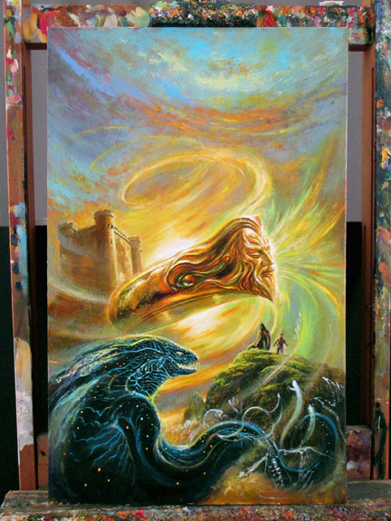 I am a Hugo award-winning fantasy/SF artist who works on both publishing projects and film concept work(such as Jimmy Neutron and most recently, The Ant Bully) but I have a passion for landscape work, small paintings and exploring the properties of paint. This blog will mostly showcase my "painting-for-the-day" as kind of a personal voyage. I'll also be inserting sketches,photos and ideas of projects I am working on, that I can, when I can, so look for those every so often(usually as paint is drying!)